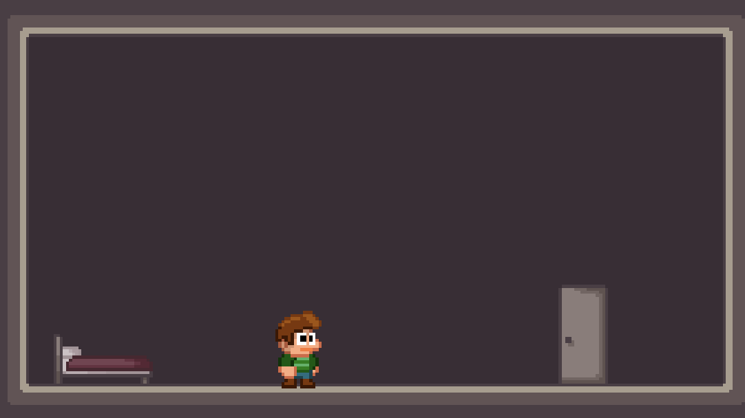 Larry has woken from sleep and wants to leave his room to go start his day, but now he's questioning if he ever woke up in the first place as he finds himself waking up from his bed over and over again.
